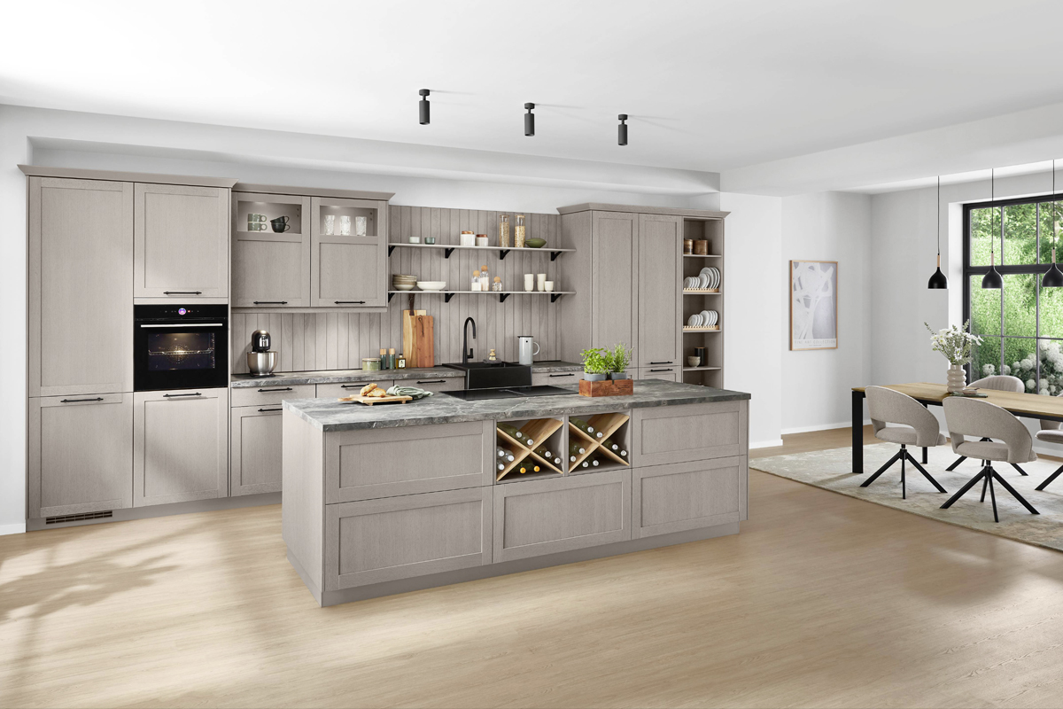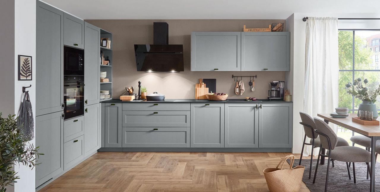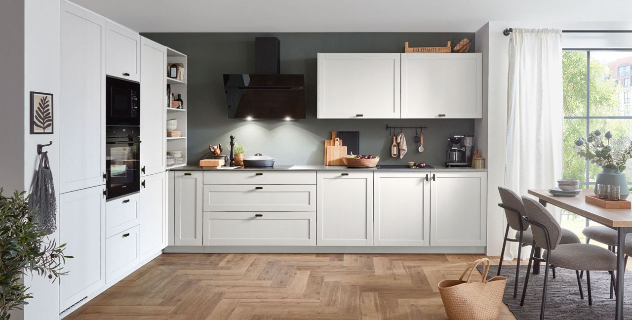 Inklusive Einbaubackofen Laurus LEB10BK Energieeffizienzklasse A, Glaskeramik Kochfeld Laurus LCA600, Designesse Schwarzglas Elica STRIPE90BK Energieeffizienzklasse B, Kühlschrank Laurus LKG122E Energieeffizienzklasse E, Mikrowelle Laurus LEMW5, Einbau-Designspüle Franke Sirius S2D611-62, XL-Schränken, Unterschrank mit Frontauszügen, Wandschrankregal.