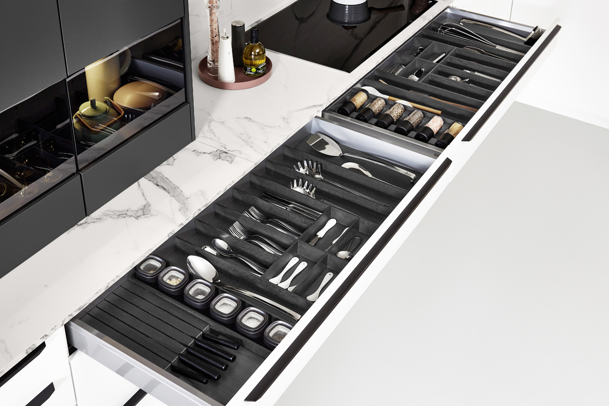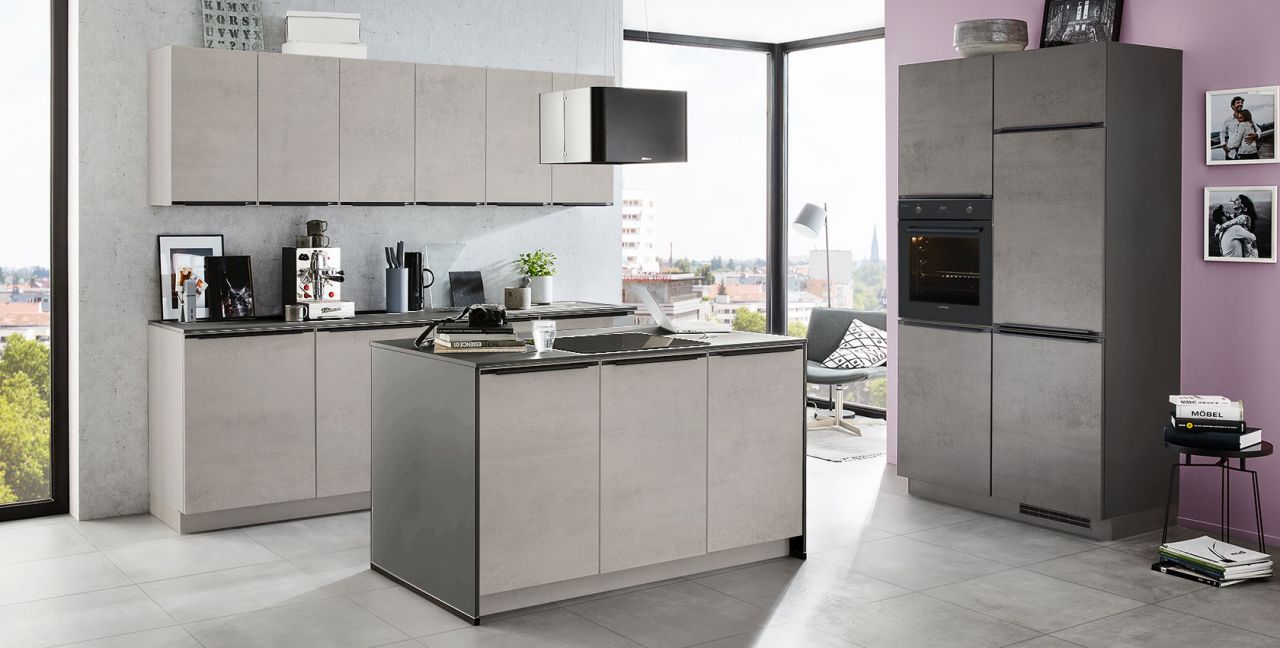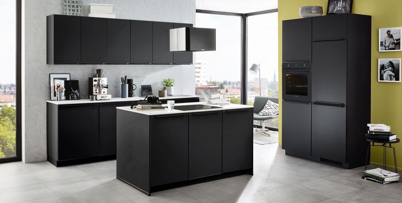 Inklusive Einbaubackofen Laurus LEB10BK Energieeffizienzklasse A, Glaskeramik Kochfeld mit Induktion Laurus LIA600, Inselesse Edelstahl Airforce F181BK Energieeffizienzklasse B, Kühlschrank Laurus LKS88E Energieeffizienzklasse E, Einbauspüle Edelstahl Rodi Okio Line 85 Deep, XL-Schränken.